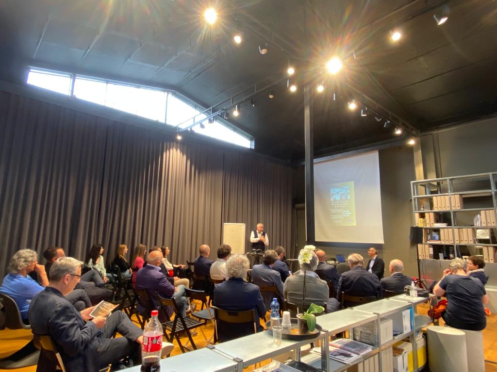 L’ospite e il Presidente davanti alla platea degli itervenuti