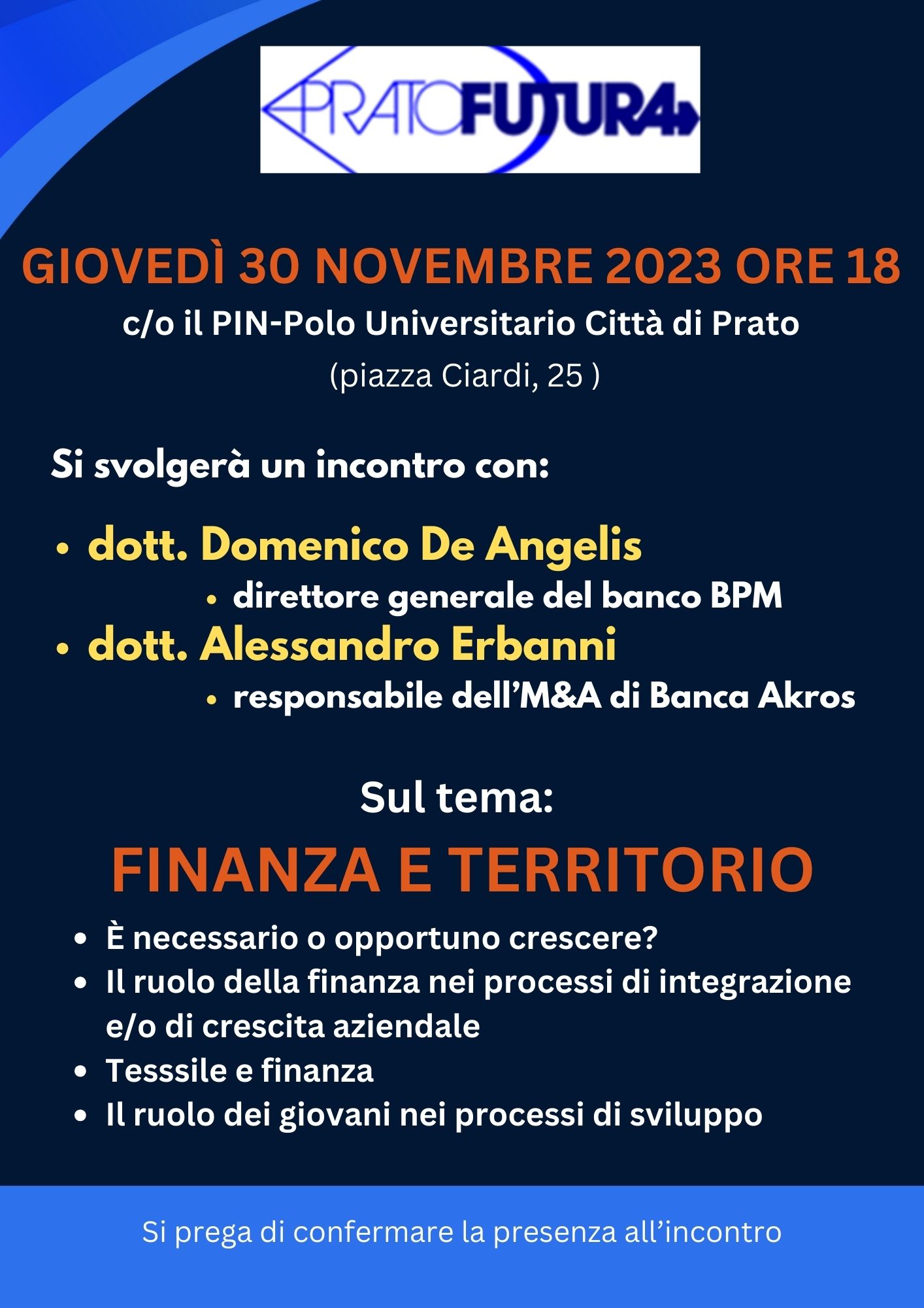 Locandina incontro Finanza e territorio 30 novembre 2023